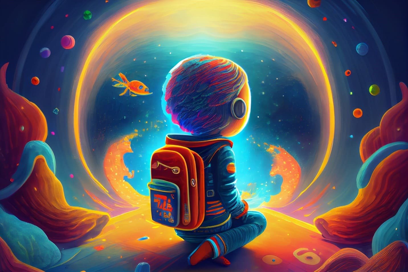 The young child closes his eyes and feels the light wash over him. The magic window opens and he puts on his imagination-powered-rocket-pack (IPRP). He opens his eyes and sees colored light swirling around him. He leaps through the magic window, propelled by the IPRP. He stands suspended in space, surrounded in a soft glow, feeling warmth and comfort all around him. [READ MORE...]